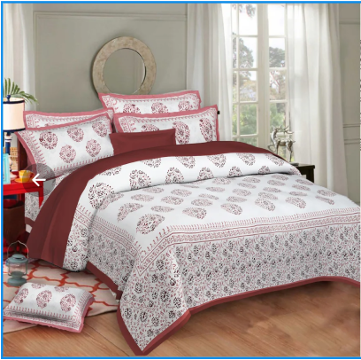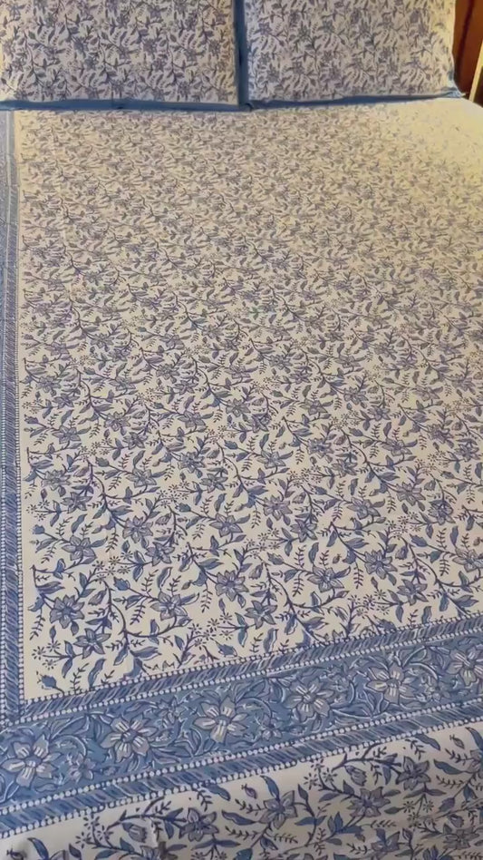 Blue and White Block Print Cotton Flat Bedsheet Set
