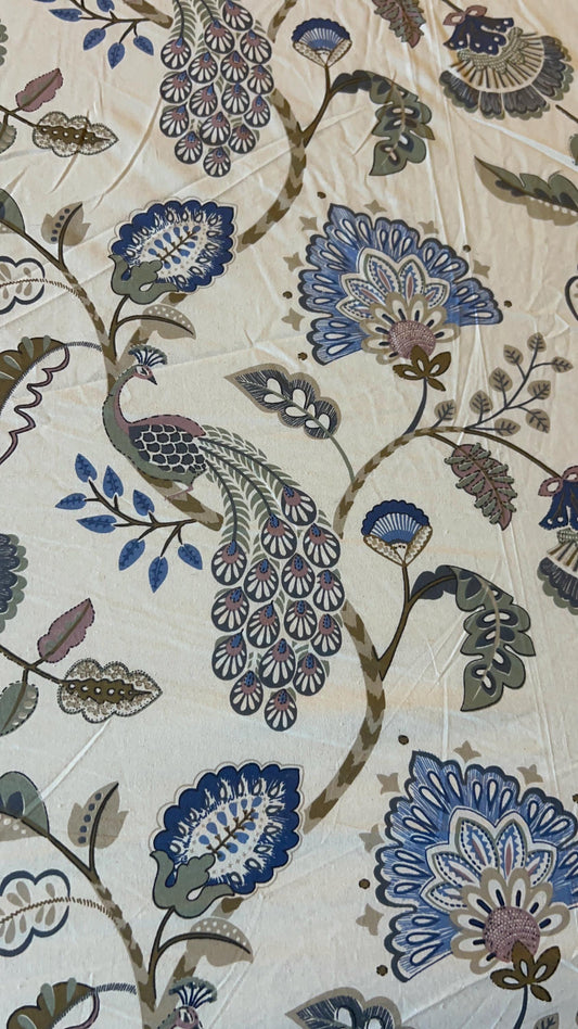 Handmade Blue Shade Peacock Floral Cotton Fitted sheet with Pillow Cases