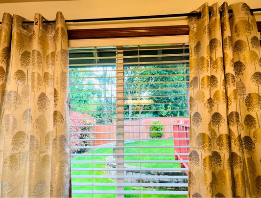 Modern Tree Patterned Curtains, Bohemian Gold and Grey Accent Curtains for Bedroom or Living Room