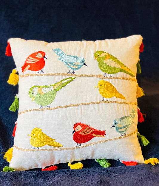 Decorative Embroidered Multicolor Bird Cotton Cushion Cover