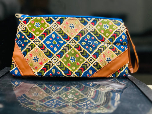 Handmade Cotton Wallet with Ikkat Design – Boho Zipper Pouch, 9.5x4.5 inches, Perfect for Gifts & Everyday Use