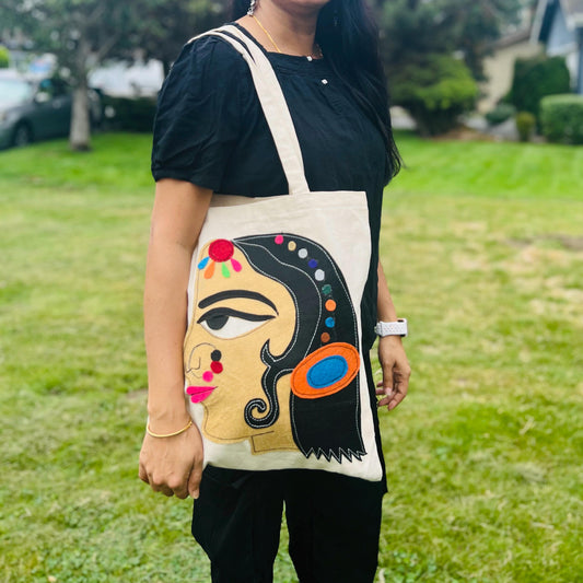 Handmade Bold Lady Profile Design Eco Friendly Bag Cotton Reusable Washable canvas tote bag