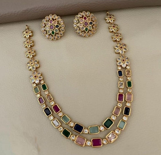 Premium Quality Gold-Plated Temple Jewelry Set with Red Stone Studded