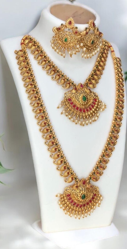 Traditional Temple Jewelry Necklace and Earring Set – Gold Finish with Pearls