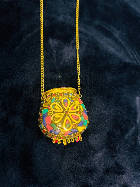 Multicolor Tibetan/Nepalese Brass Gold Tone Inlay Chip Stones PendantRegular price $24.99 USDRegular priceUnit price per-