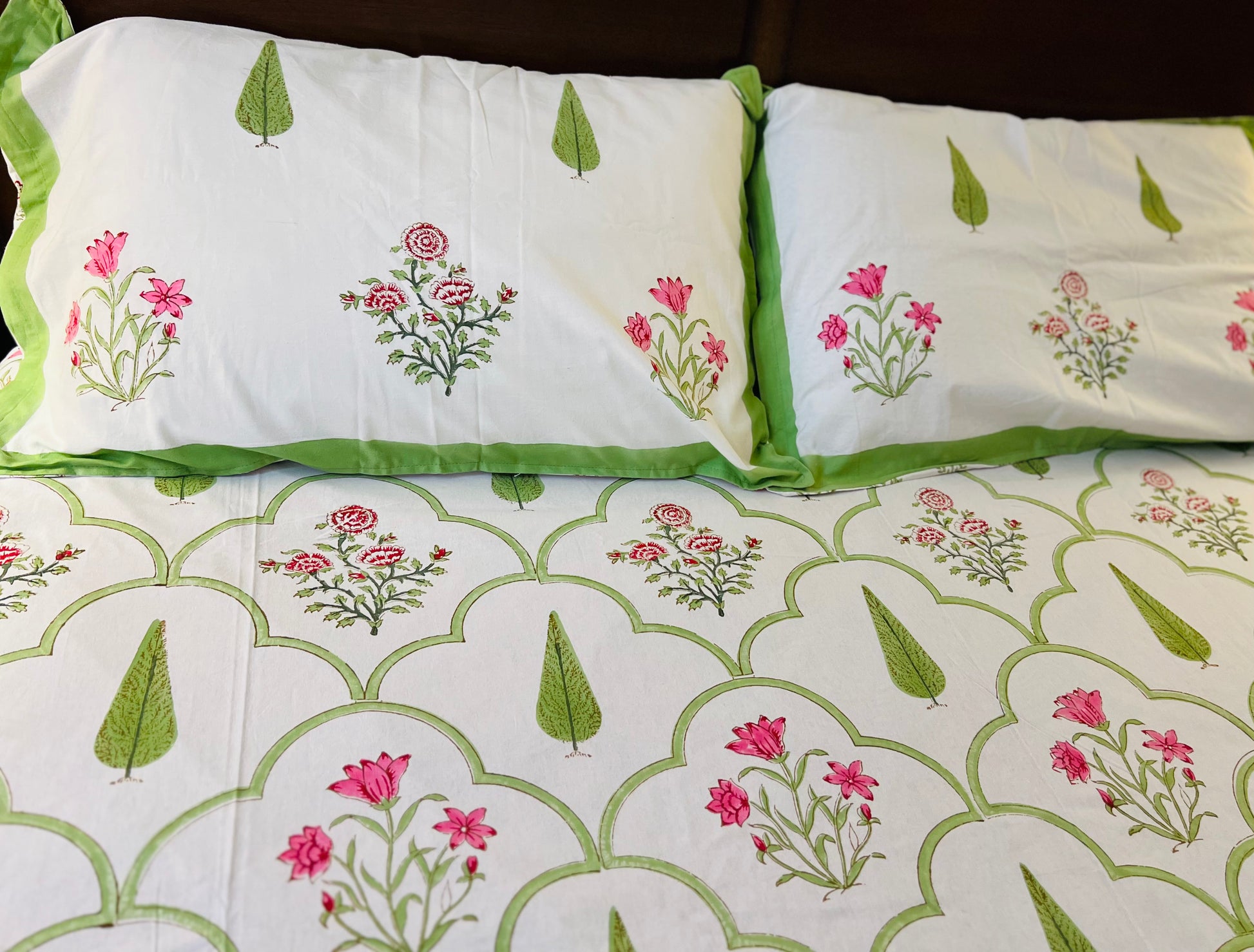 Handmade Floral Block Print Cotton Flat Bedsheet Set with 2 Pillowcase