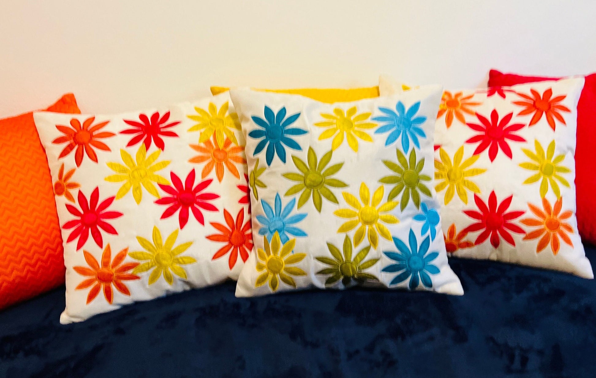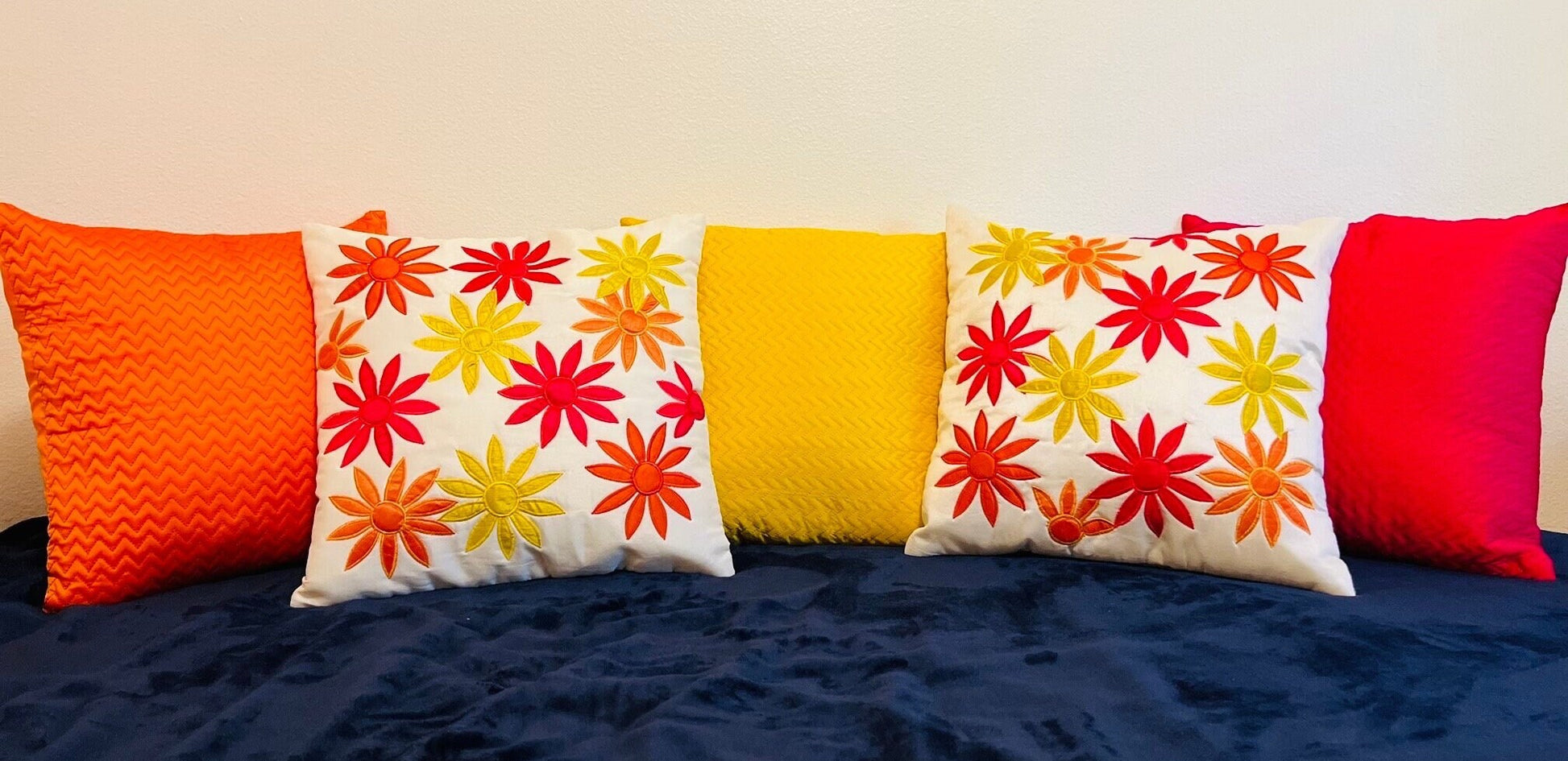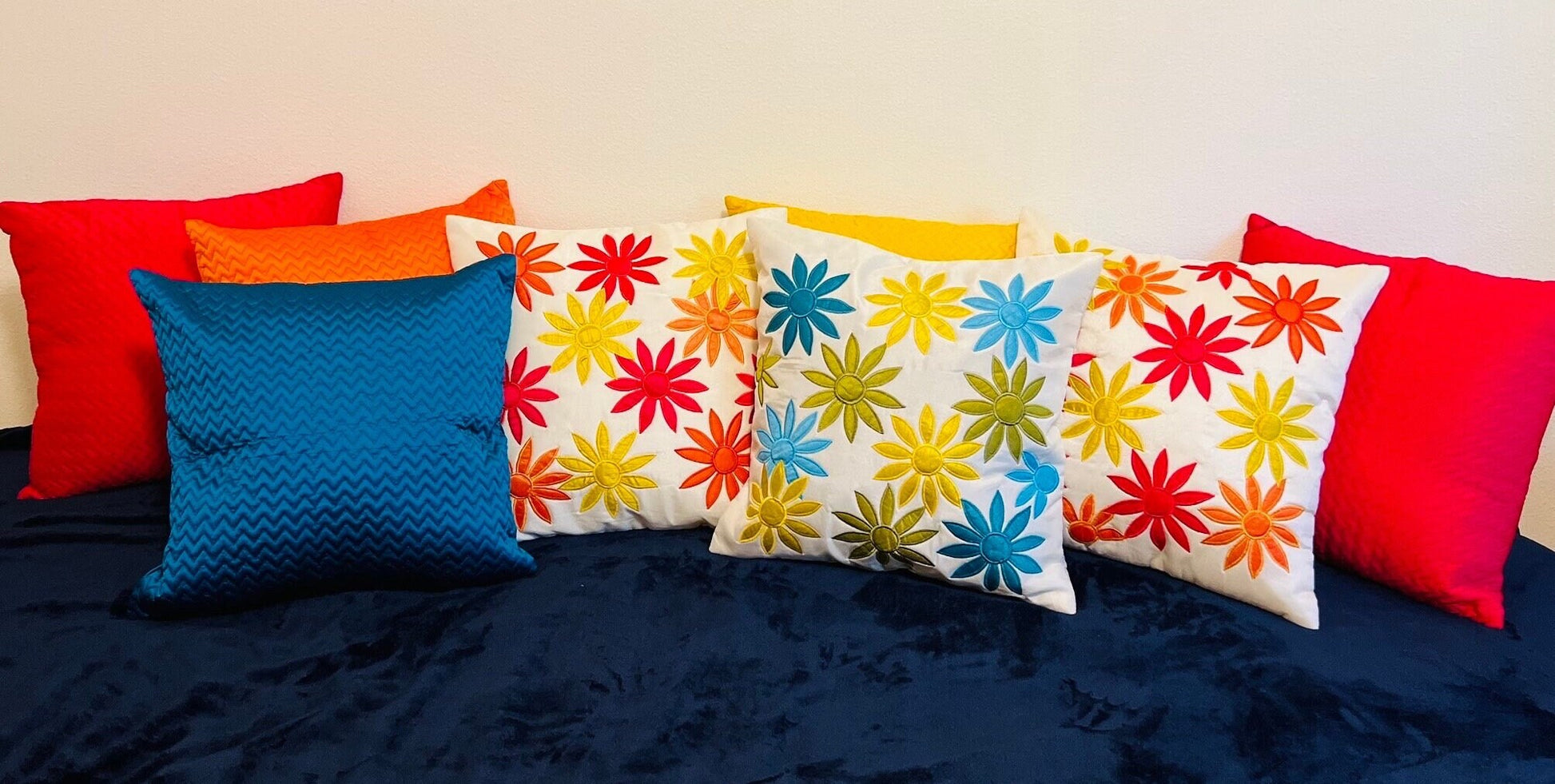This Handmade Pillow Covers are made from Silk. Features a floral design in a stunning color palette of blue, green, yellow, pink, and orange. The beautiful design is on the front side only. Perfect accent pillow that adds a splash of color and a touch of elegance to your home decor!