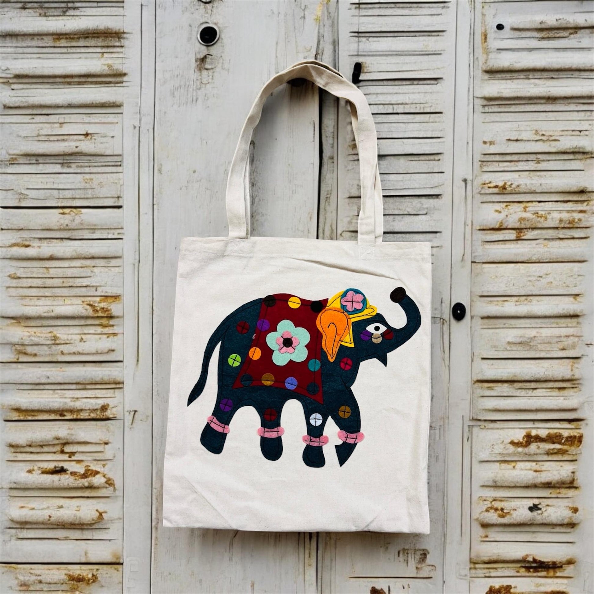Add a pop of color to your daily routine with this stylish elephant-themed tote bag!