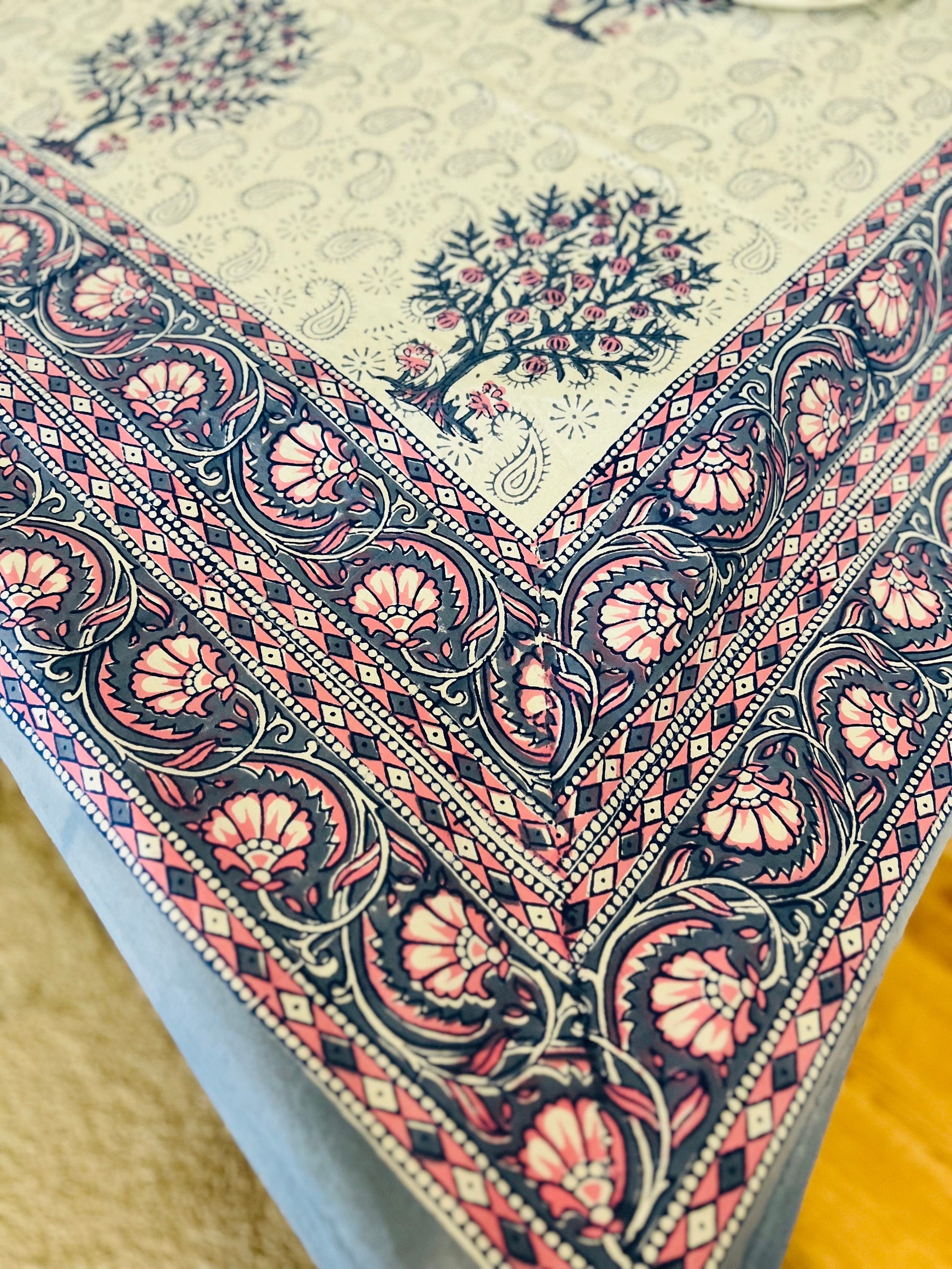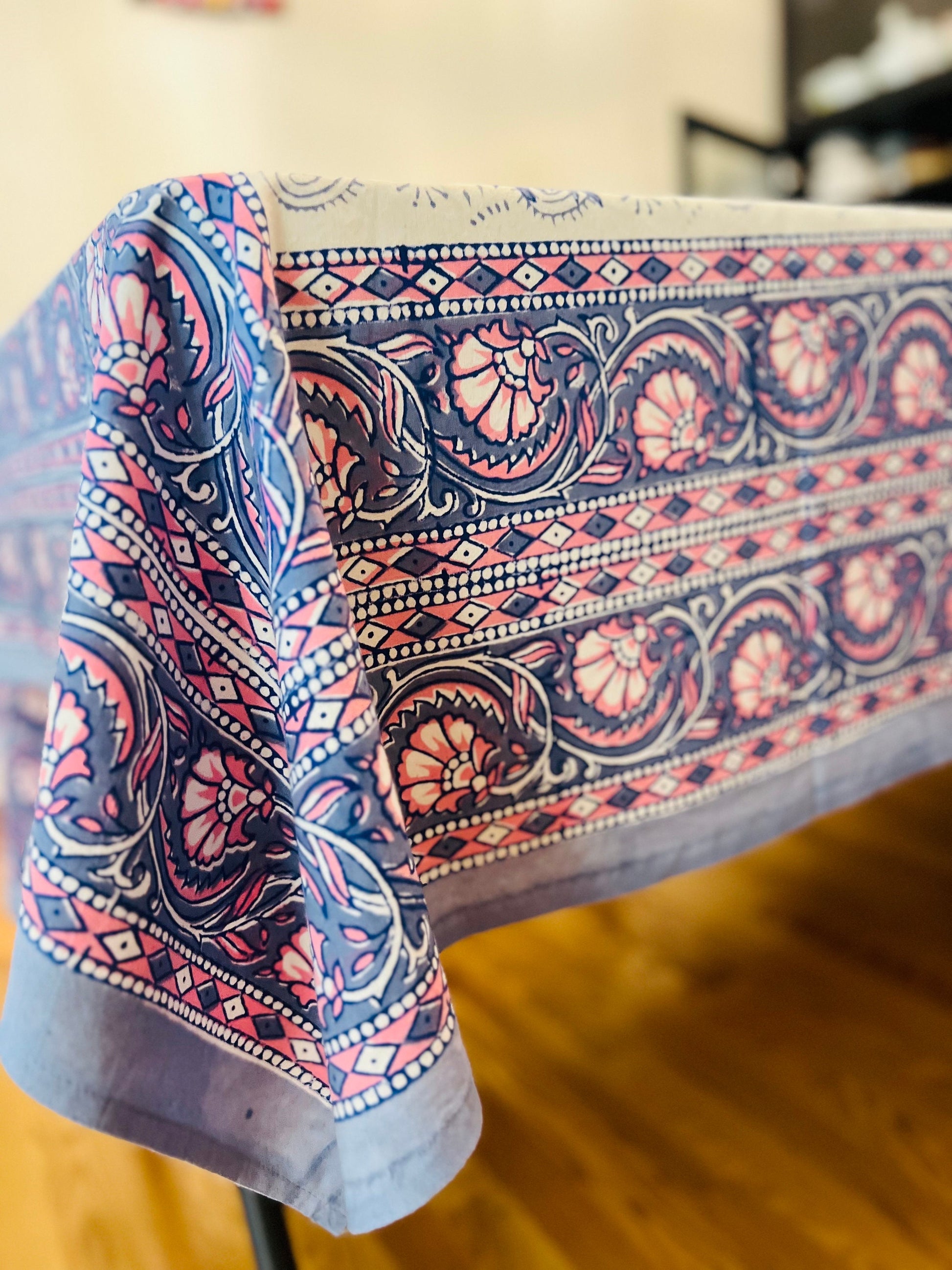 Elevate your dining table with this Gorgeous Handmade Block Print Tablecloth. Made from durable, tight-weave 100% Cotton. Our tablecloth is the perfect choice, bringing a touch of sophistication to any occasion and lends a warm, artisanal touch to your mealtime, party or any event.