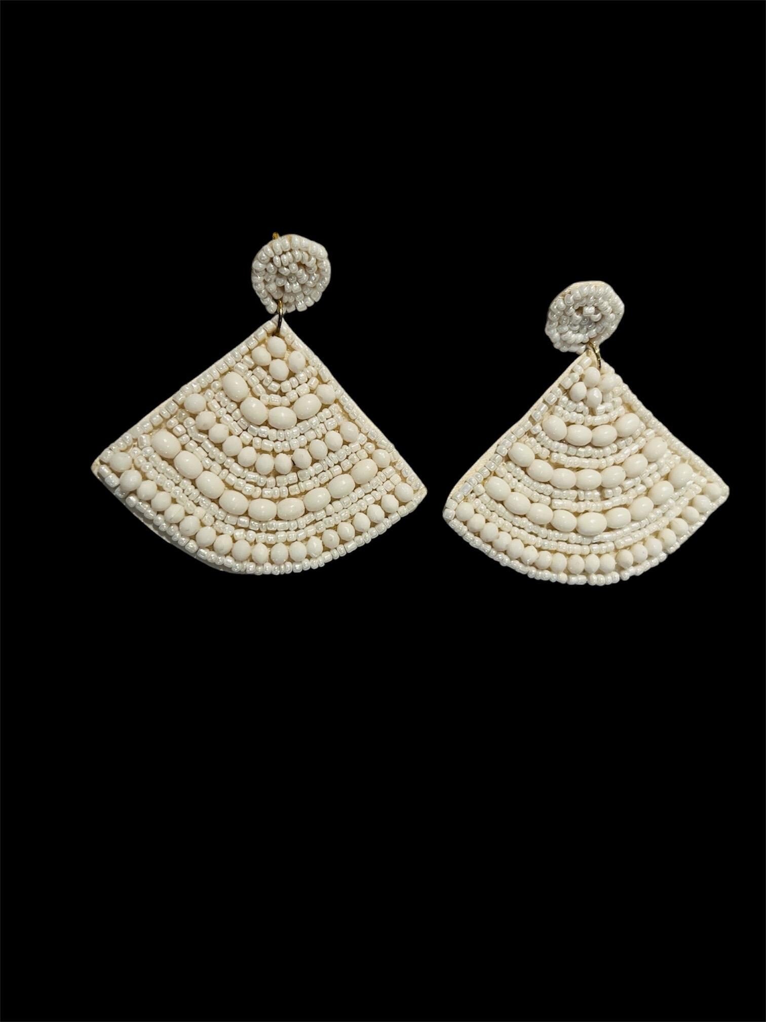 Make a statement with these beautifully handcrafted white beaded earrings! Featuring an intricate triangular design with delicate seed beads and subtle pearl accents, these lightweight dangle earrings exude elegance and charm. Whether for weddings, festivals, or everyday wear, these earrings add a sophisticated touch to any outfit.