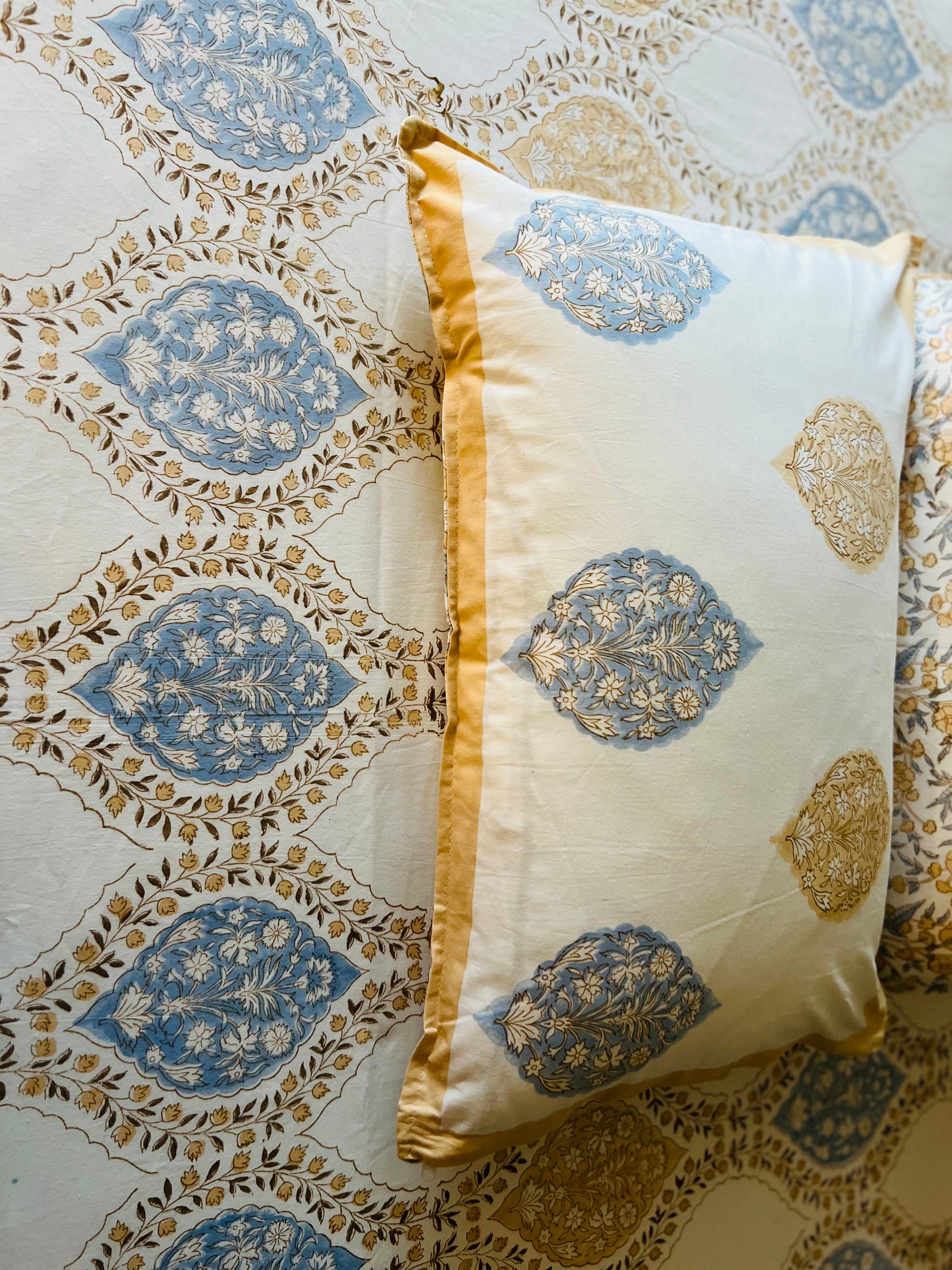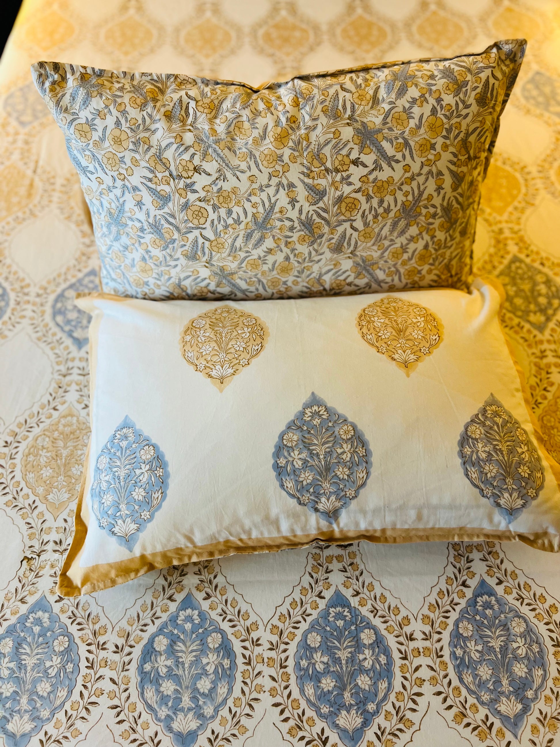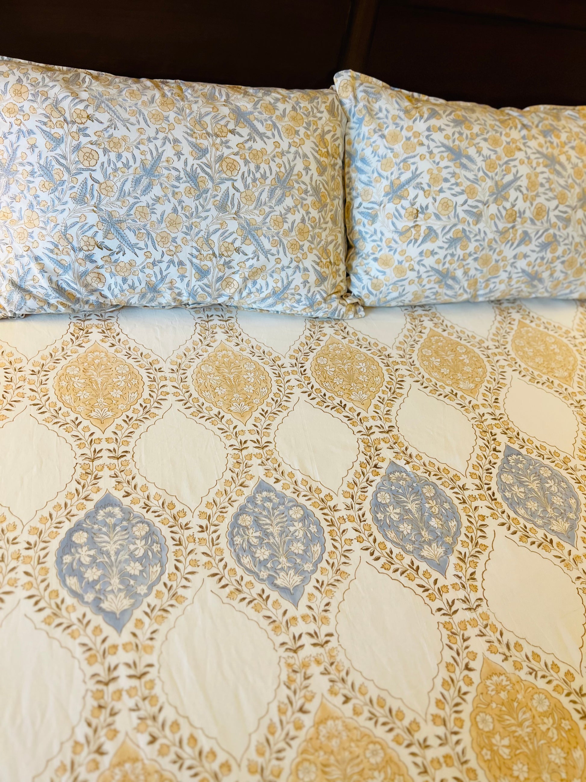 Jaipur block print cotton flat bedsheet with reversible pillow cases set