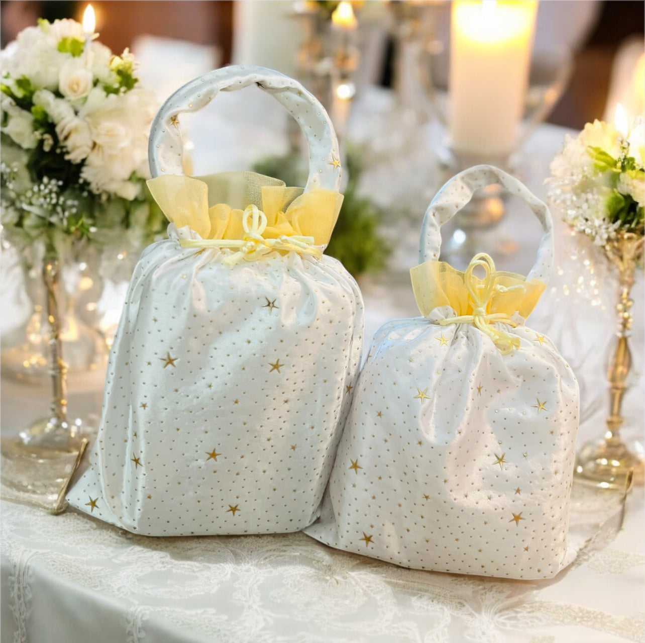 💍 Weddings & Engagements: Elegant favor bags for guests or bridesmaids.